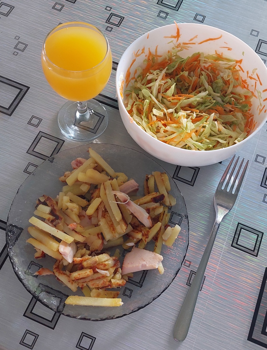 Как хорошо утром просыпаться и понимать, что ещё не пора на работу 😁 Не могу сказать, что терпеть не могу, но и особой любовью тоже не пылаю 👌🏻 Работу принимаю как данность и неизбежность. Завтрак был такой себе - кофе и печеньки. И опять поела и легла лежать 🤣 Потом всё таки встала к 12, нажарила картошку, добавила в неё остатки куриной грудки, натёрла морковь и нарезала молоденькую капусту на салат. Молодая зелёная капуста кайфическая 🔥 Впереди "длинная" рабочая неделя, а значит надо прибираться и готовить. Сварила борщ 🍛 Запекла картофельную запеканку 🥧 Муж пожарил панкейки 🥞 В 15 часов прилегла. Проснулась в начале пятого от того, что муж шуршит - полы намыл 🥰 Это какой-то рай, когда в доме в выходной к пяти вечера всё убрано и приготовлено. Для этого и нужны дополнительные выходные. В следующие у меня так не будет 😒 Пока сохли полы сделала тренировку 🦾🦿 Погрела борщ на ранний ужин под финал Богатырских игр. К ночи включили Стетхэма с фильмом Мастер под кофе и чипсы.