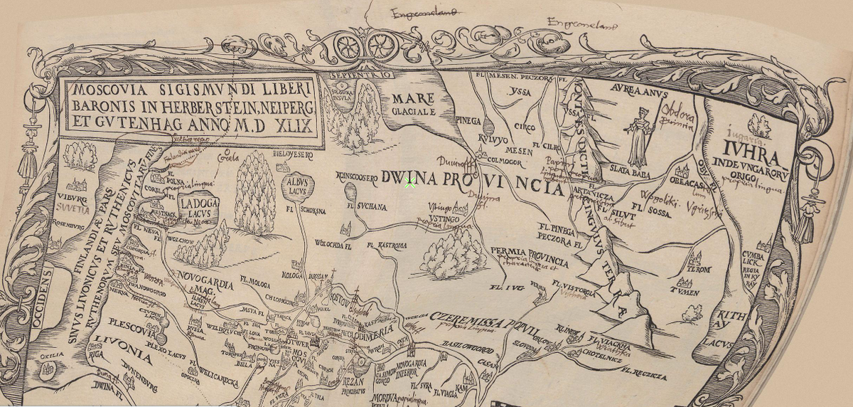 Еще одна Злата Баба. Теперь на карте Московии и Тартарии Сигизмунда Герберштейна 1550-х годов. Только в это раз она изображена не в виде упитанной женщины с двумя детьми, а в виже статуи властной правительницы: Помещена она на северо-западе Сибири у истока реки Обь. Ранее писал о ней и Лукомрье тут: