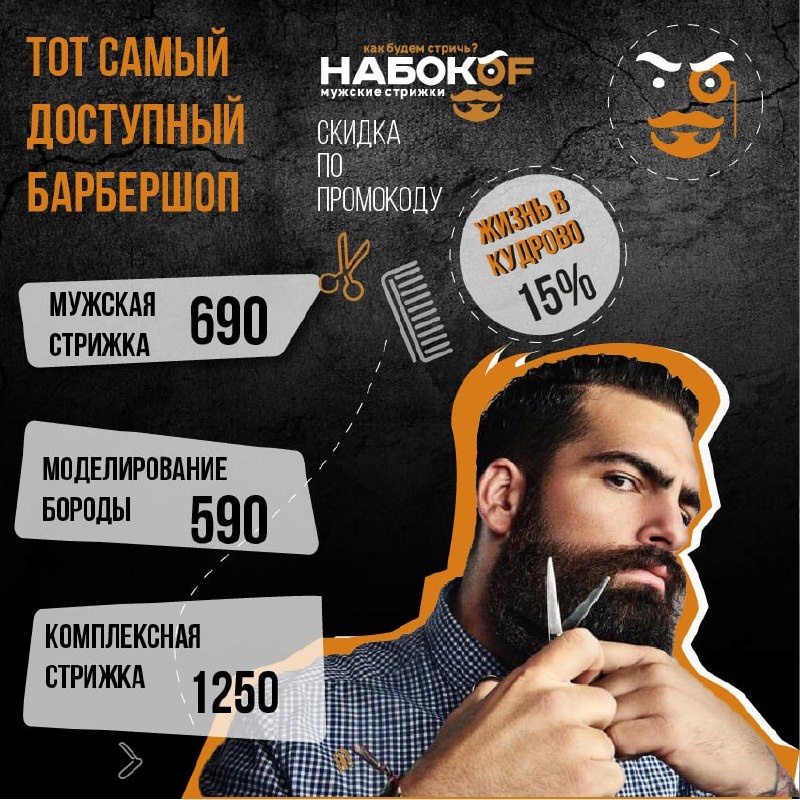 Специальное предложение: При записи на комплексную услугу “Стрижка + бритье опасной бритвой” – стайлинг в подарок! 📞 Запишитесь прямо сейчас:+ 7 (812) 928-99-93 📍 Ждем вас по адресу: Барбершоп НАБОКOF Пражская ул., 14, Кудрово Подписывайтесь на канал 👇 https://t.me/nabokof_spb https://nabokofbarbershop.ru/