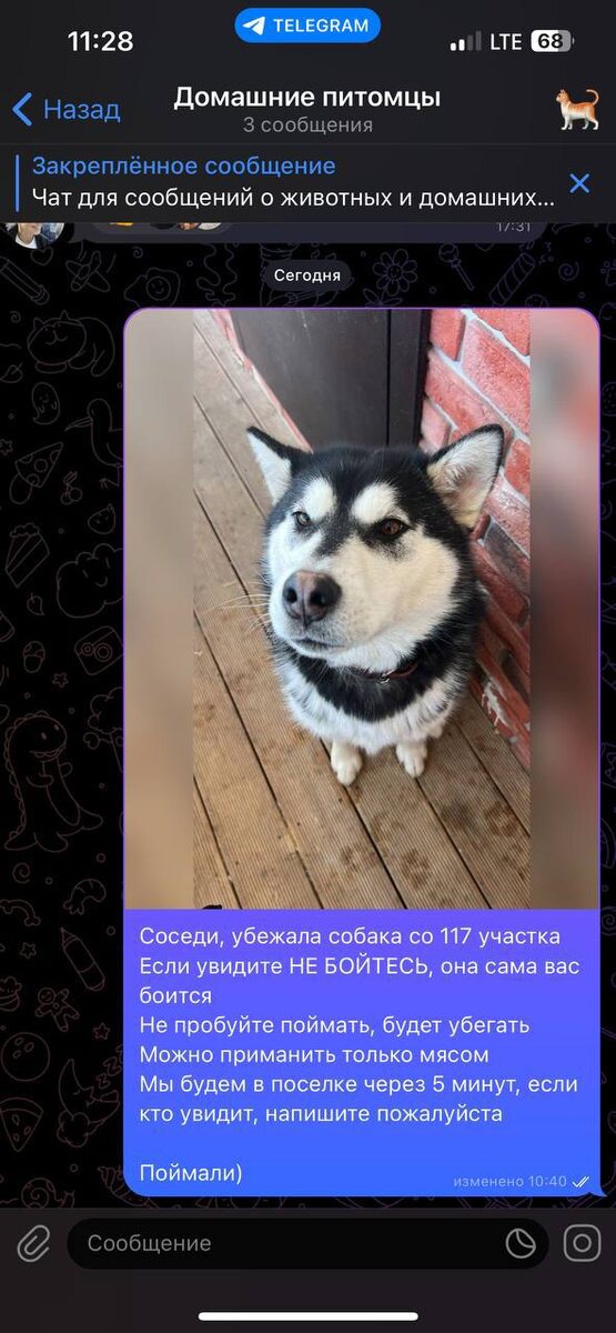 Позвонил охранник, сказал что под забором пролезла наша собака, пытался позвать ее к себе, знает что она добрая, не вышло конечно В чат поселка сразу опубликовала сообщение, она хоть и щенок, но крупная и кто-то может испугаться Тк мы приехали к стоматологу раньше, у нас было время развернуться и приехать домой, заехав в поселок охранник стоял у шлагбаума, чтобы наша не сбежала за пределы и показал куда она убежала, увидели ее, меня она не боится поэтому было понятно что выхожу к ней я, а не муж Я ее не ругала, не пыталась ее ловить, очевидно что любая собака начнет играть в догонялки, весело же🤭 Я дала команду «ко мне», поняла что она напугана и сомневается, села на корточки и стала «сюсюкаться» и звать ее «ой моя собака, иди ко мне скорей» и тд, приползла с виляющим хвостом и потерянными глазами Кстати она шла четко по маршруту нашей прогулки, он всегда одинаковый Теперь мы точно приняли решение под воротами и калиткой заливать бетонную площадку, её сложно раскопать 🤭