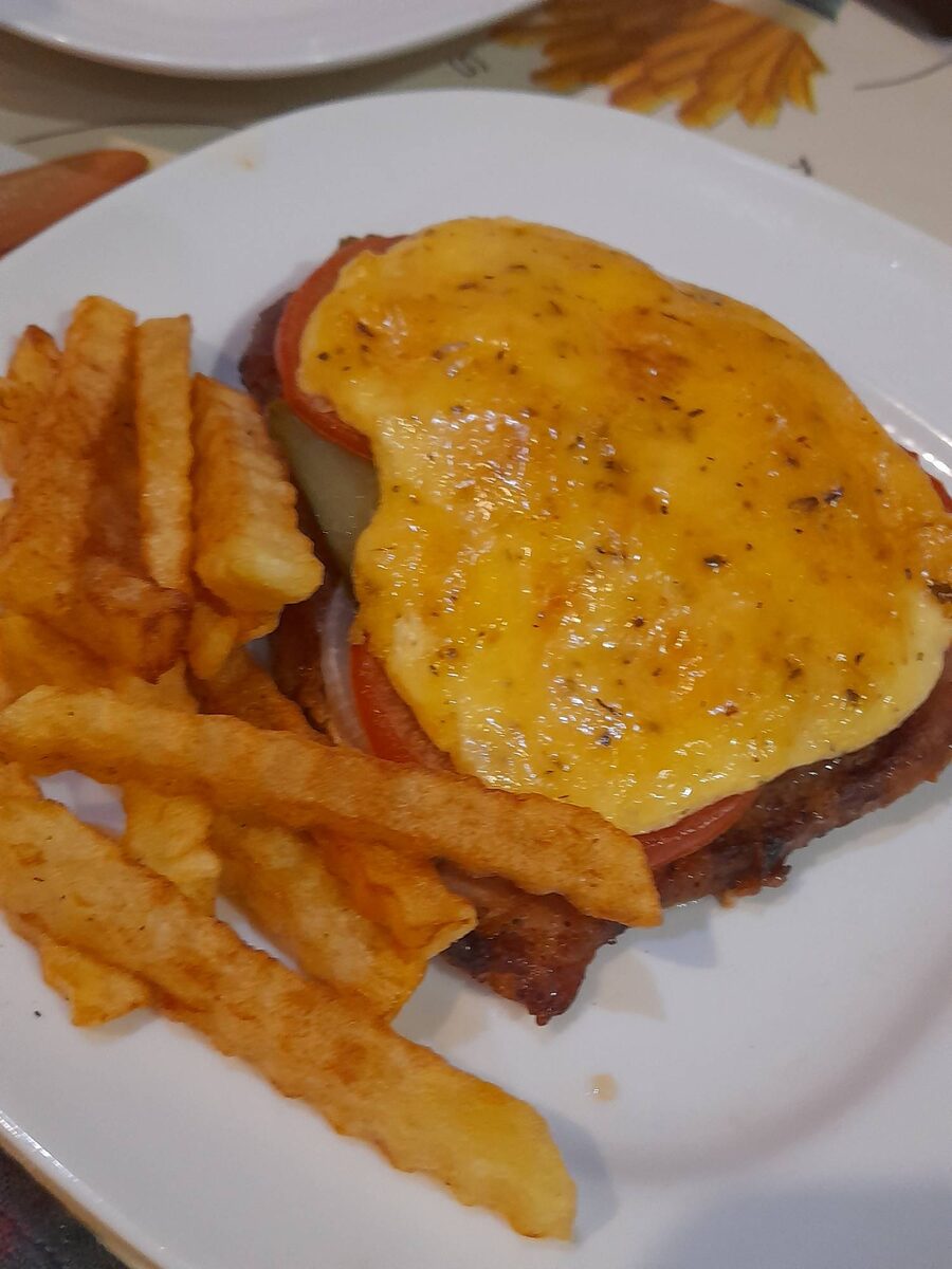 Пять ключевых аспектов: Сытность: Это блюдо идеально подходит для большой семьи или компании друзей. Оно надолго утолит голод. Простота: Минимум усилий - максимум результата! Универсальность: Вы можете экспериментировать с ингредиентами, добавляя свои любимые овощи и специи. Вкус: Сочетание мяса, овощей и сыра создает невероятную гармонию вкусов. Экономичность: Для приготовления этого блюда можно использовать недорогие сорта мяса, ведь при запекании они становятся мягкими и сочными. Мясо свинины, стейки — 1 кг.; Лук репчатый — 2 шт.; Помидоры — 4 шт.; Огурцы малосольные — 4 шт.; Бекон — 100 гр. (половина упаковки); Сыр — 200 гр.; Сметана+майонез — 10 ст. ложек; Специи — прованские травы, 2 ветки розмарина, перец черный молотый; Соль, растительное масло для жарки. Подготовка мяса. У меня мясо карбонат, получилось 10 кусков. Мясо промыть, обсушить бумажным полотенцем. Нарезать на стейки толщиной 2 см. Хорошенько отбить с обеих сторон. Кусочки увеличатся в два раза, но это не на долго. Уж