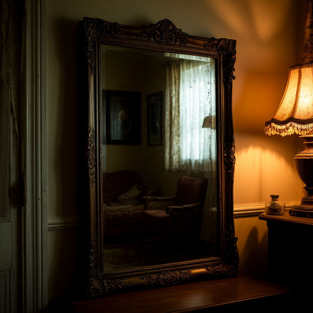 Но ночью опять — то шорохи, то ледяной сквозняк у зеркала, а свет на секунду будто зажёгся — и тут же погас сам собой. Прислушиваюсь — а сердце колотится: что, если и правда это — не просто мебель?