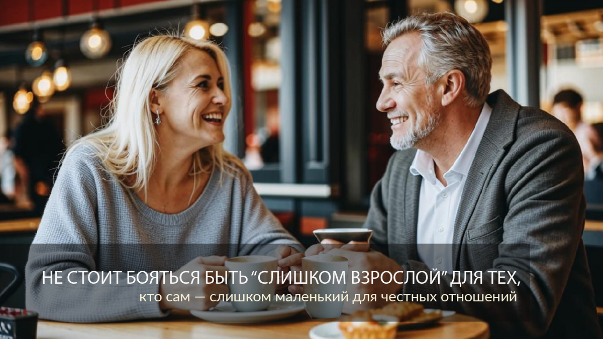 📑 Знаете, что самое интересное в этой истории? Всю жизнь кто-то пытается навесить на нас ярлыки. То мы «слишком взрослые» для одного, то «чересчур серьёзные» для другого... А однажды просыпаешься и думаешь: «А кто вообще решил, что я должна соответствовать чьим-то 'слишком'?» Вот хожу я в свои 48 с красной помадой и с растрёпанными волосами — и что? Или смеюсь громко в кафе — и пусть! Или живу одна и кайфую от этого. Потому что единственное «слишком» в моей жизни — это то, что я слишком долго слушала чужие «надо» и «должна».