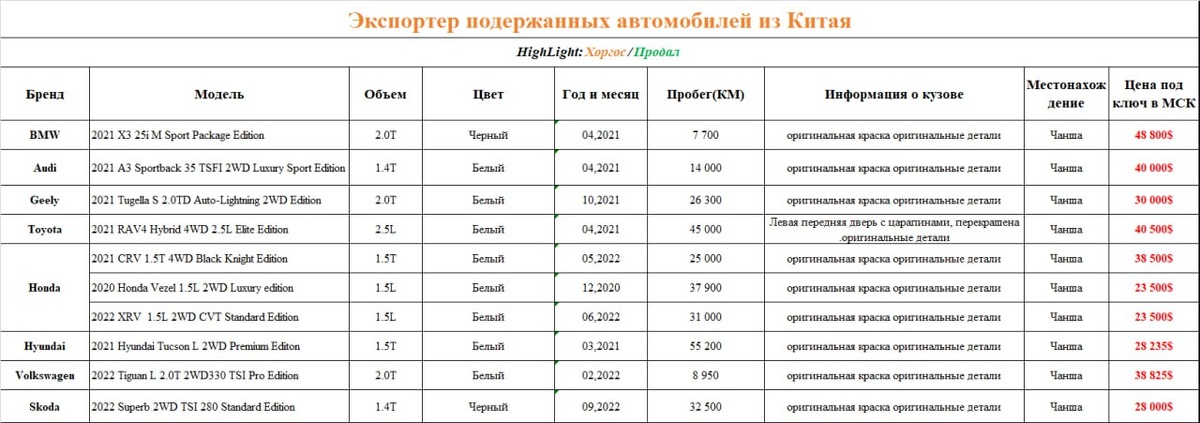 Автомобили с пробегом из Китая Срок поставки до 45 дней. Все цены указаны под ключ. Вам останется только оформить ОСАГО и поставить автомобиль на учет.