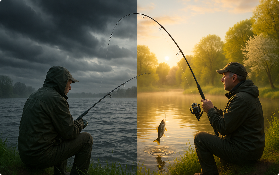 🔹 Северный/восточный ветер — клёв почти всегда хуже.