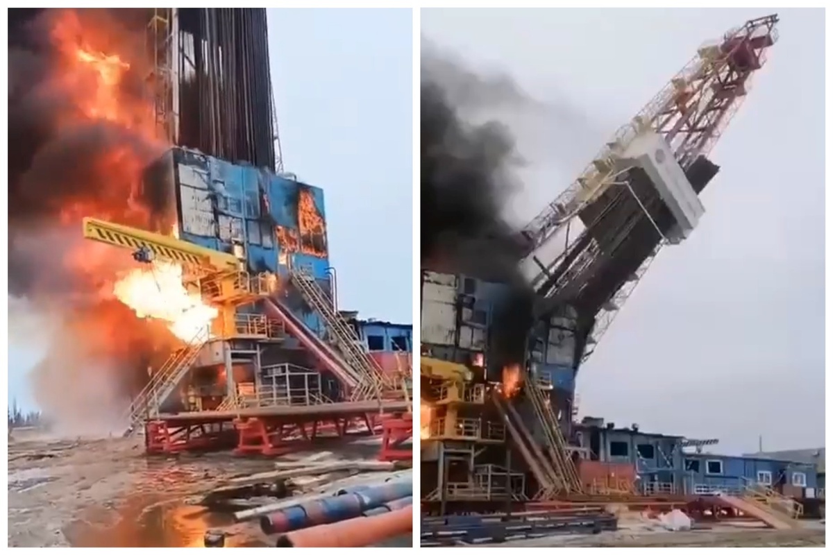 При пожаре на месторождении «Роснефти» в ЯНАО упала буровая, пострадали три человека