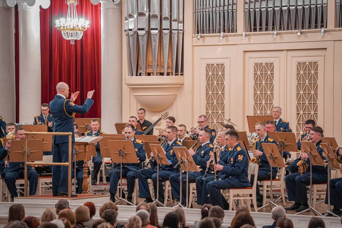 🎼 Военный оркестр штаба Северо-Западного округа Росгвардии поздравил петербуржцев с Днём Победы 🎻 Военный оркестр штаба Северо-Западного округа Росгвардии выступил с праздничным концертом, посвященном 80-й годовщине Победы в Великой Отечественной войне, на сцене большого зала Санкт-Петербургской академической филармонии им. Д.Д. Шостаковича. 🎷 Под руководством художественного руководителя военного оркестра подполковника Евгения Чубарева были исполнены живущие в памяти поколений песни о войне и военные марши: "День Победы" Д. Тухманова, "Военные музыканты" В. Лисихина, "Песня о маленьком трубаче" С. Никитина, "От героев былых времен" Р. Хозака, парадный марш "Слава Родине" С. Чернецкого.