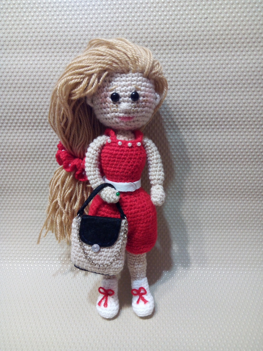 Здравствуйте . Предлагаю вам связать вот такую куколку крючком .Все аксессуары есть в описании .