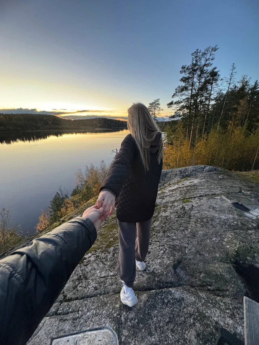 Любуемся невероятными пейзажами со скалы любви ❤️ Это место манит путешественников не только живописным видом, но и трогательной легендой о несчастной любви: он был сыном финского графа, она — дочерью рабочего ГЭС. Не получив благословения на свой союз, влюбленные вместе шагнули с утеса. Существует поверье: если бросить с этой скалы яблоко и загадать желание, оно обязательно исполнится. 📍 Ленинградская обл., район Светогорска, берег Вуоксы #локация Подпишись на Вокруг Питера