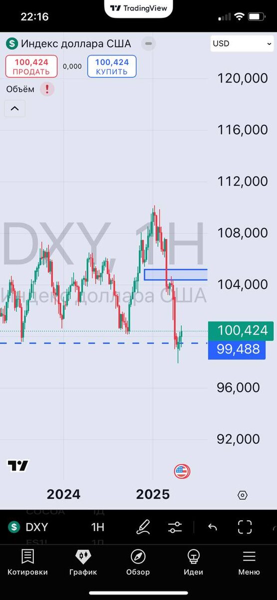 Индекс доллара. Оформил ложный пробой. Если 99 устоит, то и на 105 можно ориентироваться