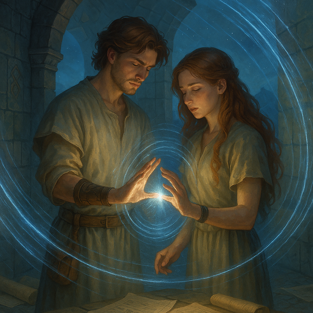 Тогда они впервые поняли: между ними формируется не просто доверие, а магическая структура. И если бы кто-то наблюдал за ними извне, он увидел бы, как в воздухе между их ладоней возникла тонкая спираль света — тихая, дрожащая, не зафиксированная ни в одном из свитков. Она исчезла через секунду. Но они оба знали — это начало.