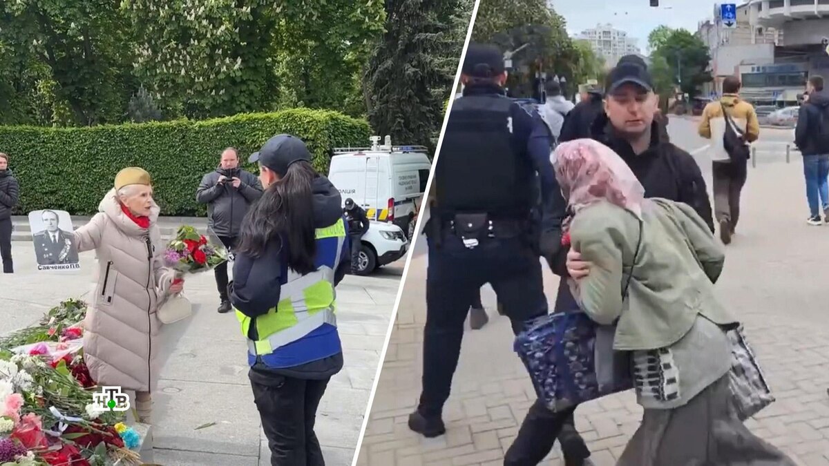 Полицейские хватали тех, кто 9 Мая пришел возложить цветы к Могиле Неизвестного Солдата в Киеве. У обелиска выставили сразу несколько патрулей, чтобы проверять документы и не допустить демонстрации символов Победы. Одна из пенсионерок с цветами и портретом своего отца, героя войны, отказалась снимать солдатскую пилотку со звездочкой. Пожилую женщину в итоге задержали.