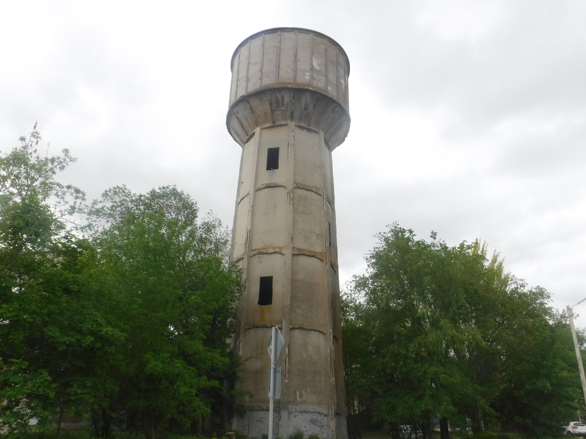Таганрог во многом город уникальный. Тут много такого, чего нет в других городах России. Есть тут в центральной части города на улице Водопроводной железобетонная водонапорная башня, каких я больше нигде не видел. Высота ее 38 метров, емкость ее должна составлять 500 кубов, но уже давно воды в ней нет: башня мертва, обезвожена-обескровлена. Построили ее то ли в 1923, то ли в 1929 году. Башня позволила в какой-то мере решить давнюю проблему качества питьевой воды в городе, которую даже увековечил знаменитый таганрожец А.П. Чехов на страницах повести "Моя жизнь": "Ели невкусно, пили нездоровую воду. В думе, у губернатора, у архиерея, всюду в домах много лет говорили о том, что у нас в городе нет хорошей и дешевой воды и что необходимо занять у казны двести тысяч на водопровод; очень богатые люди, которых у нас в городе можно было насчитать десятка три и которые, случалось, проигрывали в карты целые имения, тоже пили дурную воду и всю жизнь говорили с азартом о займе — и я не понимал