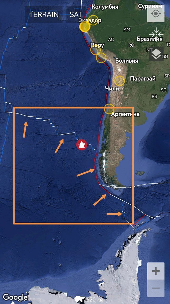 В ответ на пост Фактически в той или иной степени проявляется в небе вся отмеченная рифтовая зона протяжённостью ~5500 км (М8+). Что-то подобное наблюдалось перед землетрясением М7.4 в проливе Дрейка, которое случилось 2 мая. ==== In fact, the entire marked rift zone with a length of ~5,500 km (M8+) is more or less visible in the sky.