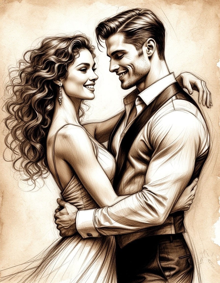 Танцующая пара. Промпт: Выразительный,драматичный черновой карандашный набросок танцующей пары.Стройная женщина с тонкими чертами лица,распущенными вьющимися волосами и грациозной улыбкой в паре с высоким спортивным мужчиной с точеными чертами лица, короткими,зачесанными назад волосами,очаровательной улыбкой. С оттенками кожи от нежно-кремового до теплого бежевого,на тонком текстурированном фоне.Рисунок черным и белым графитовым карандашом,с различной степенью тона,передающих динамичные движения,энергия и страсть танца. #цифроваяживопись #нейросеть #девушка #нейроарт #цифровоефото #рисунок #арт #нейрофото #артыотнейросетей #aiwoman #DigitalDreamscapes #digitalart #шедеврум #aiartwork #иллюстрация #пара #нейроSD #красиваядевушка #карандашныйрисунок #брюнетка #идеи #ai #монохром #мужчина #карандаш #штрихи #танец