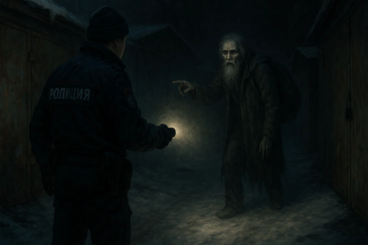 Эту историю мне поведал мой друг, Саша, который уже несколько лет служит в полиции. Его работа часто заставляет его выходить на дежурства в самые тёмные часы ночи, когда город засыпает, а улицы наполняются странными звуками и тенями. Прошлой зимой, в одну из таких ночей, с ним и произошла эта жуткая, необъяснимая история, от которой до сих пор мурашки по коже. Всё началось ещё летом, когда в нашем районе объявился странный человек — бомж, которого местные прозвали Колька Стеклотара. На вид ему было около пятидесяти, но годы скитаний и пьянства сделали его лицо почти неузнаваемым: спутанная седая борода, глубоко запавшие глаза и кожа, потемневшая от грязи и мороза. Он всегда таскал за спиной огромный рваный мешок, набитый пустыми бутылками, которые собирал по дворам, мусоркам и подворотням. На вырученные от сдачи тары деньги Колька покупал дешёвую еду и, конечно, водку. Напившись, он становился невыносимым: орал на прохожих, швырял бутылки, а однажды, в пьяном угаре, разбил стекло прип