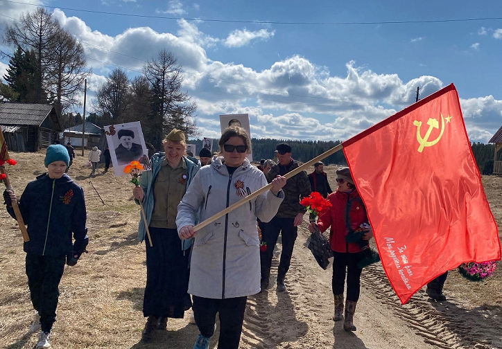 Знаете, я думаю, что нет в нашей стране ни одной семьи, в которой бы не вспоминалась Великая Отечественная война. Всех она коснулась. Кто-то из родственников воевал, кто-то трудился во время войны, и всем есть что вспомнить! Я очень рад, что в этом году возобновилась эта акция – бессмертный полк. Дети прислали фотографии из Сыктывкара – впечатляющее зрелище. По Якше тоже прошел бессмертный полк. Я даже не ожидал, что нас будет так много! Собравшись у конторы заповедника, люди прошли с фотографиями своих родственников до памятника. Памятник этот расположен на берегу реки Печоры, в ограде бывшей Никольской церкви. Мне очень понравилось, как описала это событие библиотекарь Наталья Уланова «Всегда на стороне заповедника День Победы проходит как то по-домашнему: тепло, радостно и уютно». Именно так! Ведь все здесь много лет знают друг друга. Около памятника провели небольшой торжественный митинг, дети читали стихи, звучали праздничные и проникновенные слова. А затем зазвучал вальс Победы,