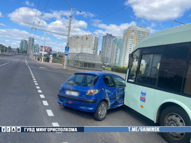 ДТП с участием автомобиля и троллейбуса с пассажирами случилось на пр. Дзержинского днем 9 мая, сообщает корреспондент агентства «Минск-Новости» со ссылкой на ГАИ. Троллейбус и легковая машина столкнулись на пр. Дзержинского Автомобилистка решила свернуть с проспекта направо на ул. Е. Гедройца, но стала выполнять маневр со второй полосы, когда по первой к перекрестку приближался попутный троллейбус, следовавший прямо. Его водитель попытался затормозить, но транспортные средства уже оказались слишком близко друг к другу и в итоге столкнулись. В Госавтоинспекции уточнили, что в этом инциденте люди не пострадали. Участники аварии составили европротокол. Фото и видео ГАИ