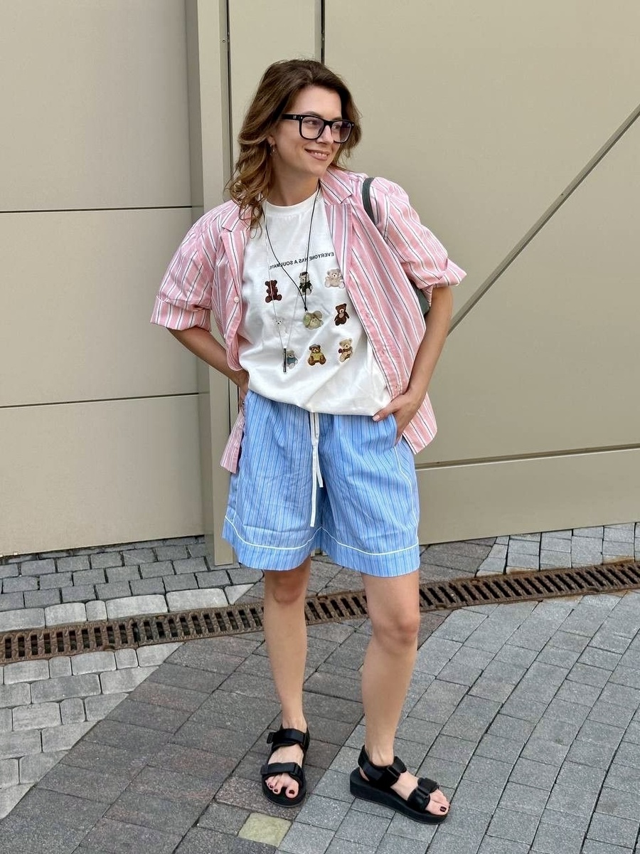 Всем привет! Совсем скоро нам предстоит наконец носить всеми любимые шорты. И пора бы узнать, какие именно модели будут в тренде. Так что изучайте статью и начинайте продумывать летние образы. Приятного прочтения! Шорты уверенно вытесняют джинсы, становясь универсальным элементом гардероба. Их можно надеть в офис, не нарушая дресс-код, а затем отправиться в них на вечернюю вечеринку. Летом 2025 в тренде останутся классические денимовые модели, но не менее популярными окажутся актуальные ткани и фасоны. Рассказываем, какие именно шорты будут в моде и с чем их сочетать. Пижамный шик. Тренд на комфорт и утилитарность породил моду на шорты в пижамном стиле. На подиумах встречаются полосатые модели, шёлковые боксёры и варианты с нежным цветочным принтом — то, что раньше считалось домашней одеждой, теперь можно смело носить даже на работу. С чем носить? Играйте на контрастах: «пижамные» шорты отлично смотрятся с оверсайз-рубашкой и пиджаком с расширенными плечами. Для более расслабленн