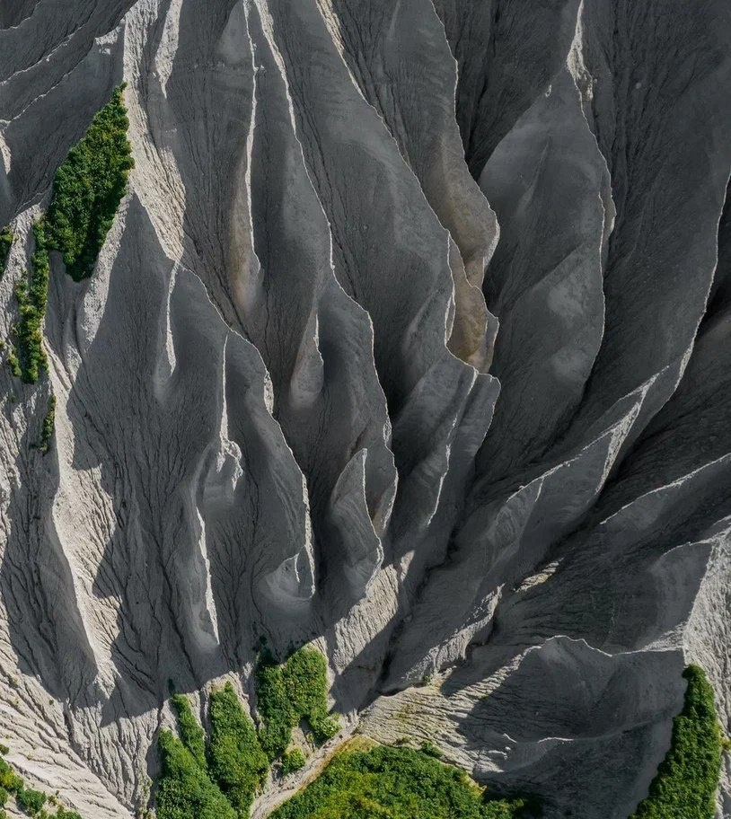Скульптуры ветра. Снимок Артема Удодова с конкурса РГО «Самая красивая страна». На фото показаны Белые скалы на острове Итуруп, что в Курильской гряде. Эти образования состоят из пемзы. Она очень хрупкая, а значит, податливая . С моря дует сильный ветер. Он и меняют рельеф скал, создавая свое современное искусство.