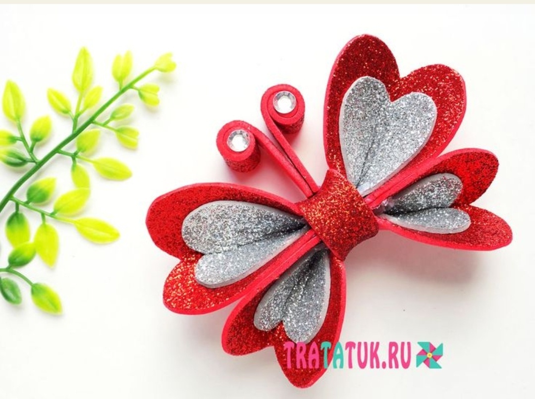 Всех приветствую. Сашка вчера залезла в кладовку и нашла мои запасы для творчества, а я тот еще хомяк. Особенно ей понравился набор цветного глиттерного фоамирана аж до истерики "хочунемогу, дай я буду его резать". На вопли пришла старшая и они стали вопить вдвоем. Одна что не дают, вторая что та вопит. А я ж хомяк, ну мне жалко, она его изрежет да выбросим. Предложила сделать поделку, нашли в интернете вариант бабочки. И стали творить, я нарисовала шаблон крыльев, Саша обводила. Потом я ей дала искать бусины для тельца, а сама клеила крылья. Вот что в итоге получилось. В процессе еще пришлось искать проволоку, но в хомячьих запасах все есть. Долго крутила-вертела бусины на кончик проволоки, чтобы они не соскакивали. Сашка довольна, мой набор сильно не пострадал)) А позавчера Сашка вообще была молодец, пока я отмокала в ванной она спокойно сидела одна и лепила из пластилина. Сделала вот такую красивую гусеницу.