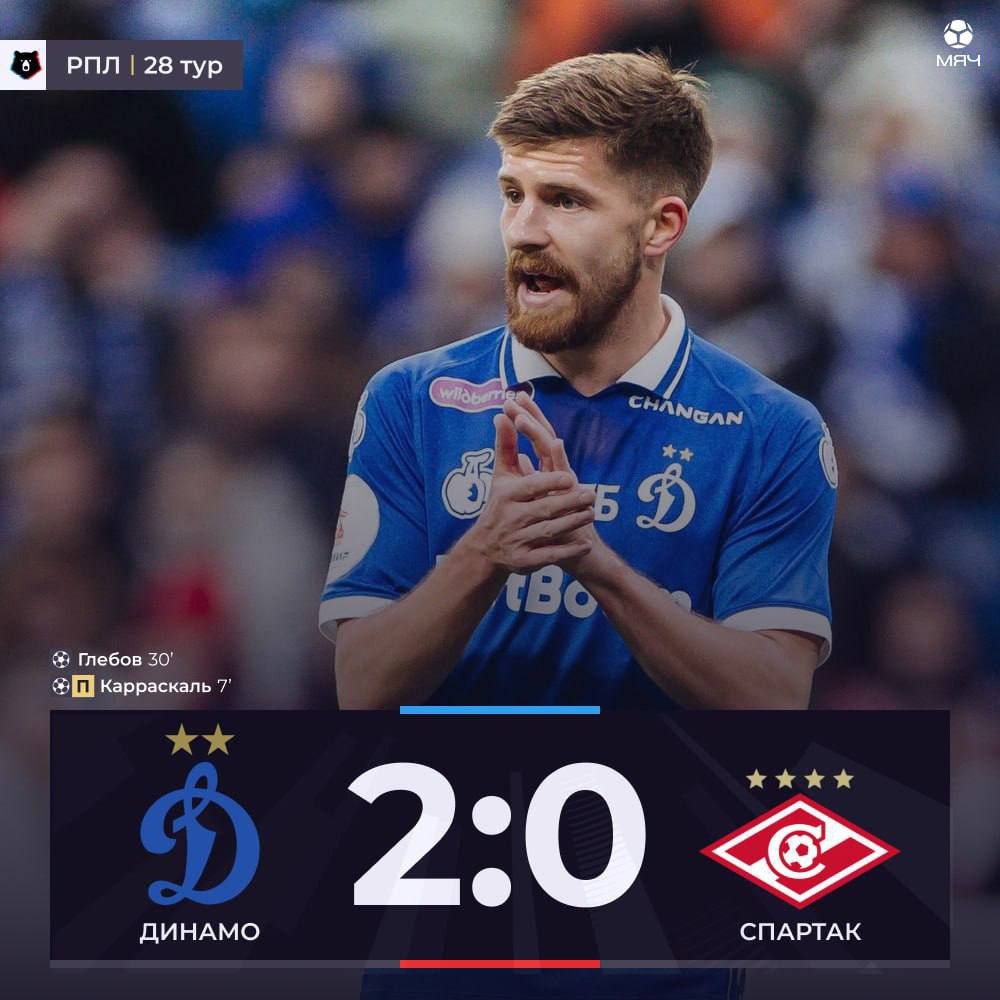Угальде вновь не забил, а "Спартак" проиграл в столичном дерби "Динамо" - 0:2⚽️ 11 матчей подряд костариканец не может отличиться. В последний раз форвард забил 3 марта в игре 19-го тура РПЛ против «Оренбурга» (2:0)😱 "Динамо" все вопросы решило в первом тайме. Карраскаль на 7 -ой минуте переиграл Максименко с пенальти, а на 30-ой ассистировал Глебову. Бело-голубые (53) обогнали команду Станковича (51) в турнирной таблице, поднялись на четвертое место и сохраняют шансы на бронзу✊