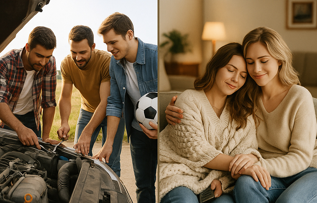 Мужская дружба часто растёт через совместные действия — футбол, ремонты, бизнес, армия, бар. Она может длиться десятилетиями — без “разговоров по душам” и выяснения отношений. Мужчинам не нужно постоянное эмоциональное подтверждение, что они друзья.