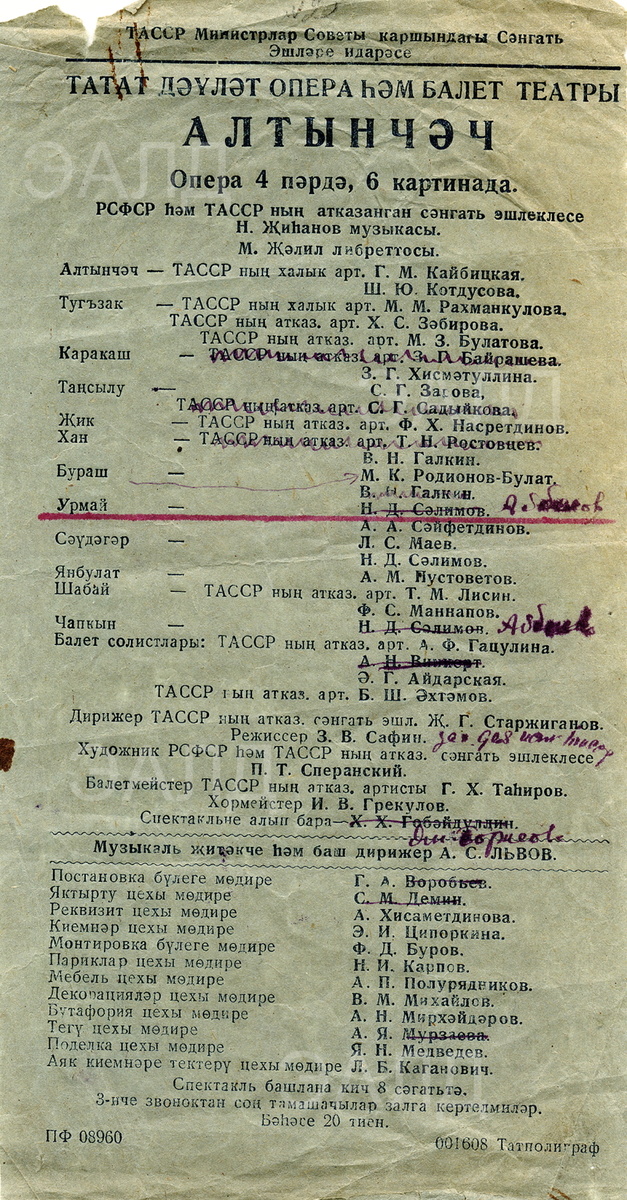 Управлением по делам искусств при СНК ТАССР режиссёром-постановщиком был назначен оперный режиссёр Ленинградского театра оперы и балета им. Кирова – Леонид Васильевич Баратов. Декорационное оформление возлагалось на приглашённого художника Бориса Алексеевича Матрунина, поскольку П.Т. Сперанский в 1937–1940 гг. осуществлял полномочия главного художника «Павильона ТАССР» на Всесоюзной сельскохозяйственной выставке в Москве. Балетные сцены, занимавшие значительное место в спектакле, были поставлены Г.Х. Тагировым.