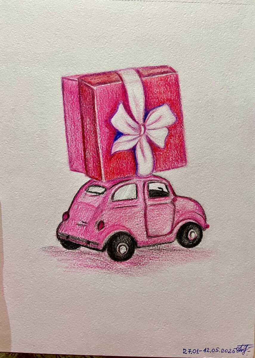 Наконец-то закрыла гештальт с этой машинкой.Подарок был нарисован ещё в январе, а 🚗 раскрасила только сейчас