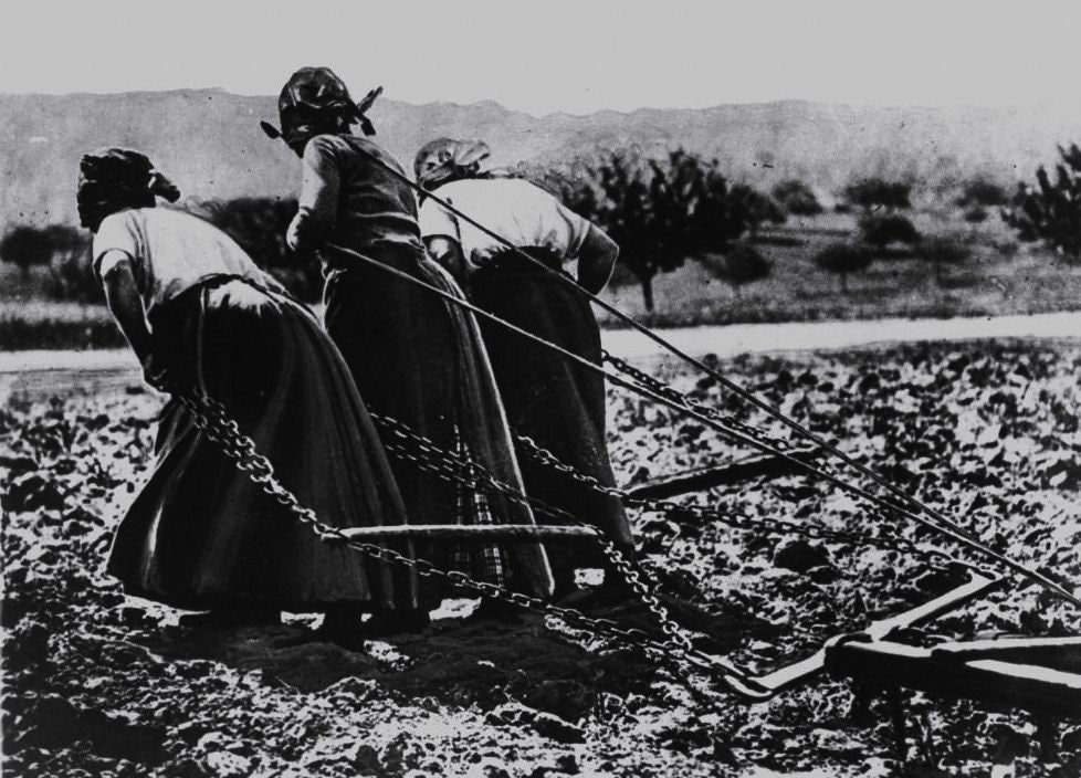 ...рассказывали в №8659 газеты "Биржевые ведомости" за 1905 год: Помещик Елецкого у., некто Р., человек молодой и с образованием, придумал оригинальный способ утилизировать крестьянскую силу. Он закладывает деревенских "девок" в сохи и пашет на них землю под свёклу. На соху (конечно, сохи "лёгкие"!) приходится по две "девки". Одна ведёт, а другая сохой "правдает". Получает человек-лошадь по 30 к. в день, а девка "правила" по 20 коп. Земли под свёклу возделывается десятин 50 ежегодно. Как жаль, что не сообщается имени этого "изобретателя". Не оскудела ещё, видимо, земля русская. Для справки: так называемая казённая десятина — это 2'400 квадратных саженей — это 10'900 м² — это 109.25 соток — это 1.09 гектара. Снимок не из этой газеты, но суть та же...