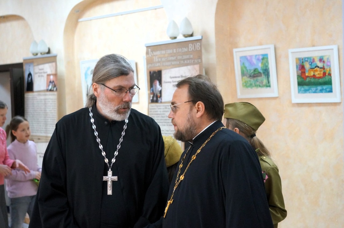 Перед началом спектакля, в фойе Красковского центра, гости смогли посетить епархиальную выставку «Духовенство в годы Великой Отечественной