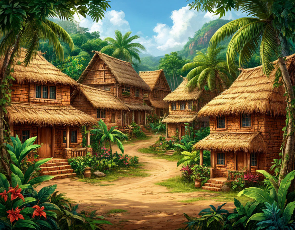 На самом краю джунглей, там, где лес уже отступал перед полями и тропинками, стояла большая деревня. Дома, сложенные из тёмного дерева и глиняных кирпичей, теснились друг к другу, будто стараясь укрыться в тени высоких кокосовых пальм. По утрам над деревней поднимался дымок — женщины разводили огонь, готовя завтрак, а мужчины собирались у центральной площади, обсуждая дела.