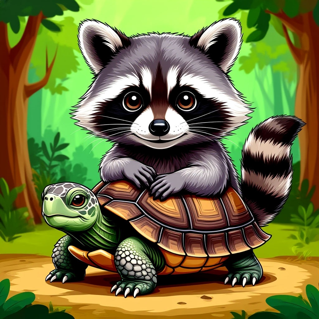 **Глава 1: Тишина у Ручья** В лесу Звенящих Рос жил енот Ремми с полосатым хвостом и любовью к загадкам. Каждое утро он умывался в хрустальном ручье, чьи воды напевали песенку. Но однажды ручей исчез, оставив лишь сухие камни. «Без воды лес засохнет!» — испугался Ремми и побежал к мудрой черепахе Терре, чей панцирь хранил карты всех источников. **Глава 2: Тайна Старой Плотины** Терра, медленно жуя лист, сказала: «Исчезновение воды — дело лап болотных духов. Они разрушили плотину Бобров, и река ушла под землю. Найди Серебряный Камень в пещере Гремящих Камней — только он вернёт поток». Ремми собрал верёвку из лозы и фонарь из светлячков, готовый к опасности. **Глава 3: Союзник в Тростниках** У высохшего русла Ремми встретил бобрёнка Бамби, который грустил, обнимая обломки плотины. «Духи украли наш строительный камень! — всхлипнул он. — Я помогу тебе его найти, если ты поможешь мне восстановить плотину!». Ремми кивнул: «Вместе мы справимся!». **Глава 4: Пещера Эха** Пещ