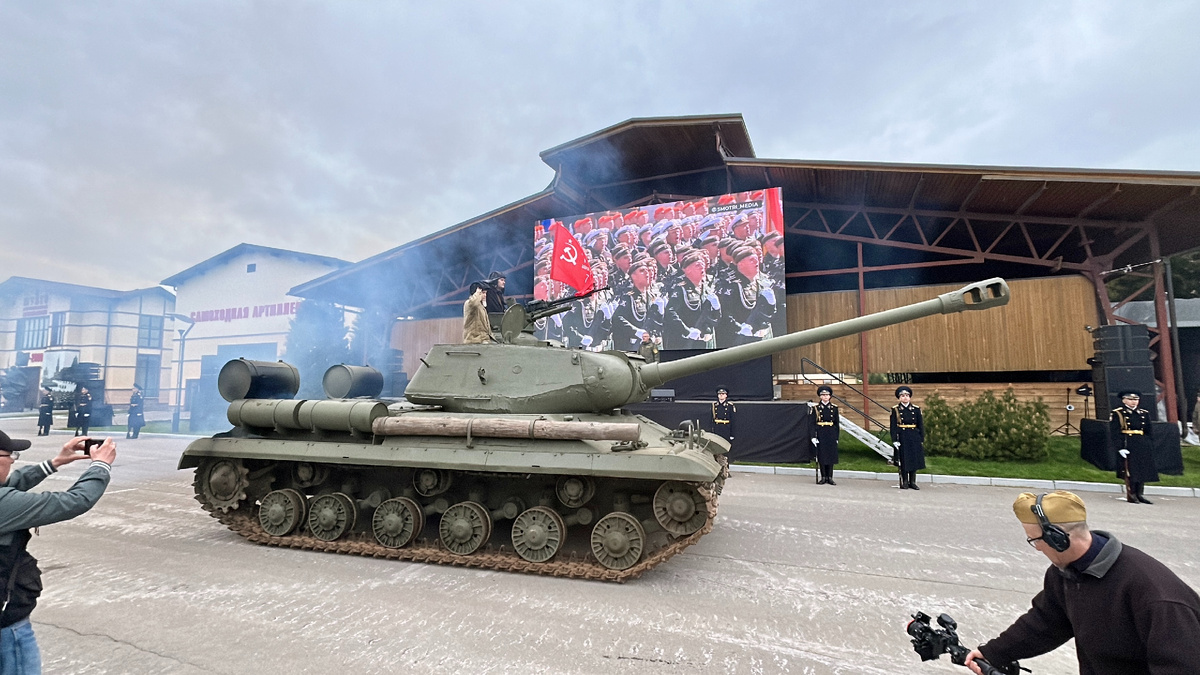 Столь же мощным оказалось выступление тяжёлой самоходки ИСУ-122 — ещё одной музейной редкости.