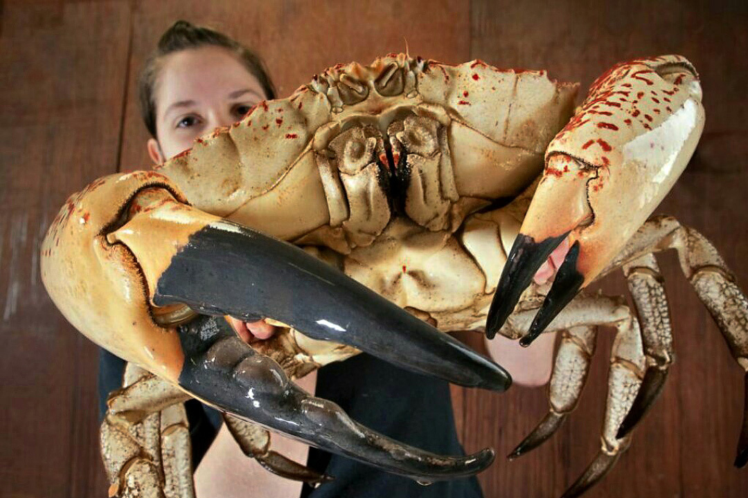 Привет, мои дорогие любители необычной земной фауны. Сегодня мы поговорим о крабах, среди которых наш герой, вне всякого сомнения, звезда первой величины. И для знакомства с ним придётся отправиться на противоположную сторону земного шара. Итак, знакомьтесь, если вы ещё не знакомы – тасманийский гигантский краб (Pseudocarcinus gigas), которого называют также королевским крабом или крабом-быком. Это один из самых больших представителей ракообразных. Его панциря может достигать почти полуметра в ширину, а масса животного превышать семнадцать с половиной килограммов. Только японский краб имеет массу больше – девятнадцать килограммов. Как можно догадаться из названия, тасманийский краб обитает у берегов Тасмании и на южном побережье Австралии. Наш герой ведёт довольно глубоководный образ жизни, предпочитая глубины около двухсот метров ниже уровня моря. Питается этот подводный танк в основном падалью, но может закусить и иглокожими и рыбами, если удастся поймать. Не побрезгует и сородичами,
