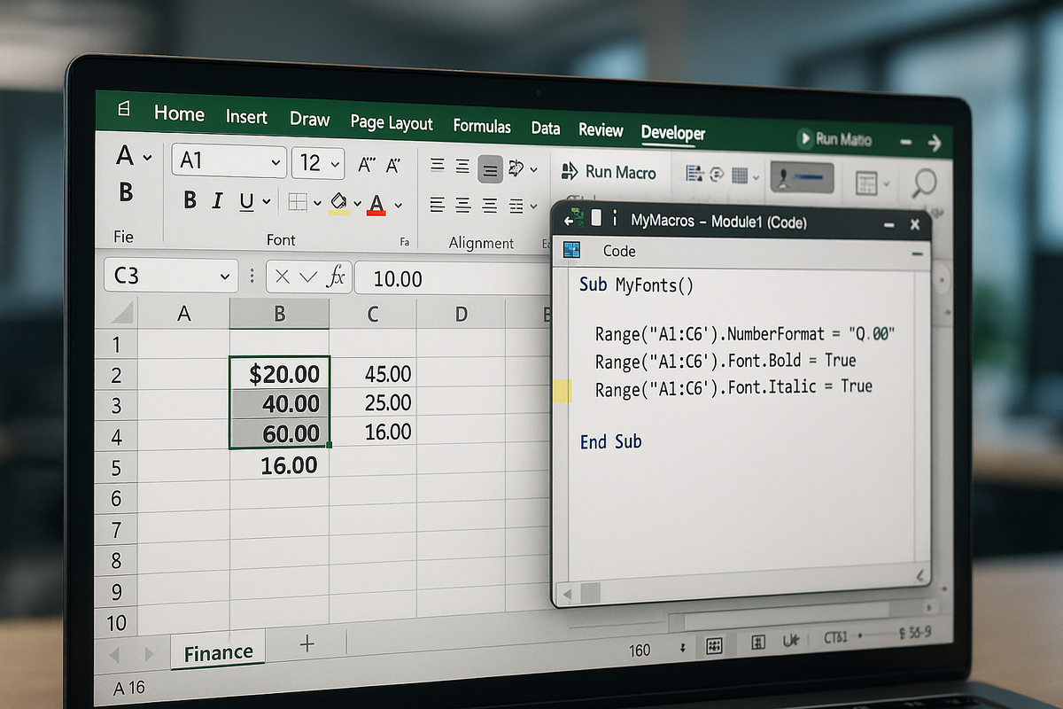 Если вы регулярно работаете с Excel — вы точно сталкивались с рутиной: нужно изменить формат чисел, сделать текст жирным, выделить курсивом или подчёркиванием. Вручную — это десятки кликов. А теперь представьте, что всё это можно автоматизировать одним макросом.
