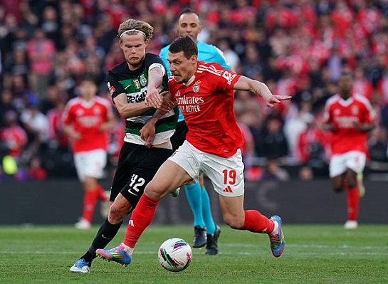 В первом тайме игру "Бенфики" вёл Ди Мария. 37-летний чемпион мира 2022 года в составе сборной Аргентины выглядел очень даже неплохо, тем удивительнее стала его замена в перерыве на Андреаса Шельдерупа. Но этот ход Бруну Лаже привёл к тому, что лиссабонские "орлы" сравняли счёт. Для ответного гола хозяевам потребовалось половина второго тайма. Красно-белые много контролировали мяч, постоянно оказывали давление на ворота соперника и вообще действовали очень инициативно, но "Спортинг" весьма надёжно оборонялся. Однако на 63-й минуте сказалось индивидуальное мастерство Вангелиса Павлидиса. Грек получил мяч слева от штрафной площади "львов", тут же включил дриблинг, обыграл нескольких своих оппонентов, после чего прострелил на Керема Актюркоглу, турецкий вингер пробил по воротам в борьбе с Макси Араухо, а мяч от головы игрока гостей оказался в сетке – 1:1! Вполне мог быть записал автогол, но всё-таки официально взятие ворот было засчитано на Керема Актюркоглу.