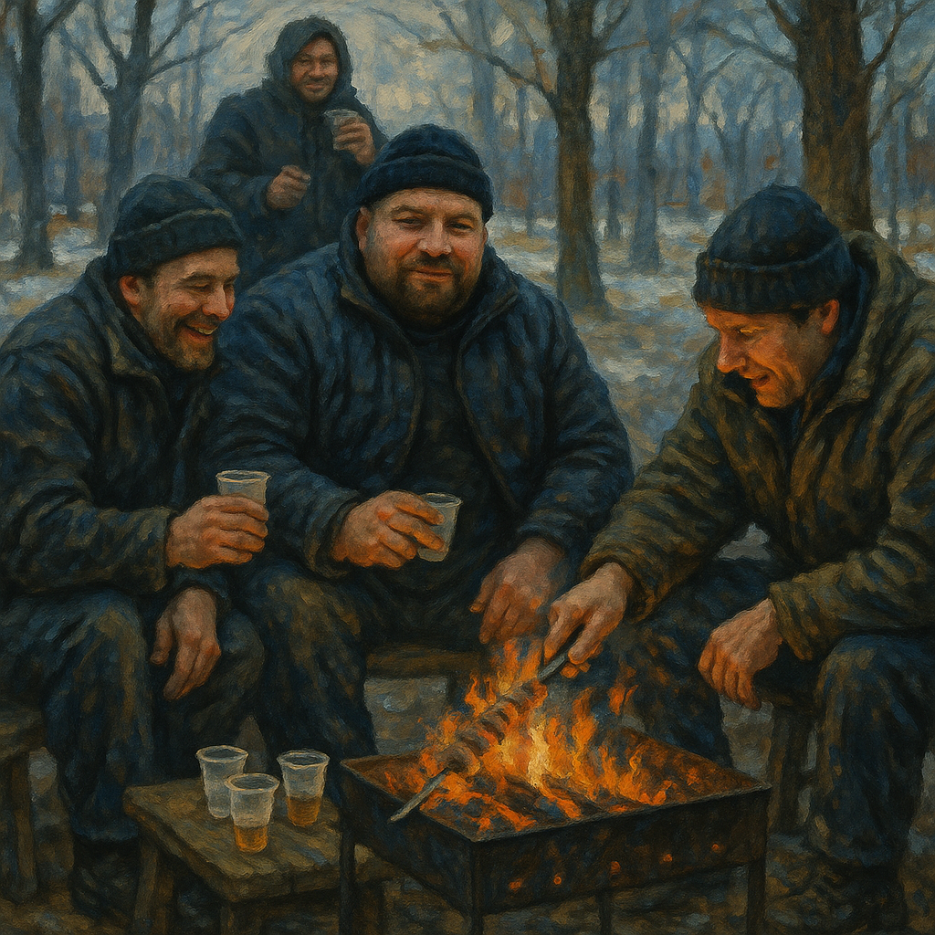 для них весна наступала с первыми светлыми днями. Пашка дружил с Маринкой, продавщицей. И у неё в подвале хранил разборный мангал, железный ящик на длинных ногах, брал готовую в маринаде свининку. Витька прятал в раздевалке на работе канистру мутного пойла. А Сашка, как самый молодой, летал по лавкам, собирая зелень, лаваш или хлеб, огурцы и обязательно спичечный коробок с солью.
