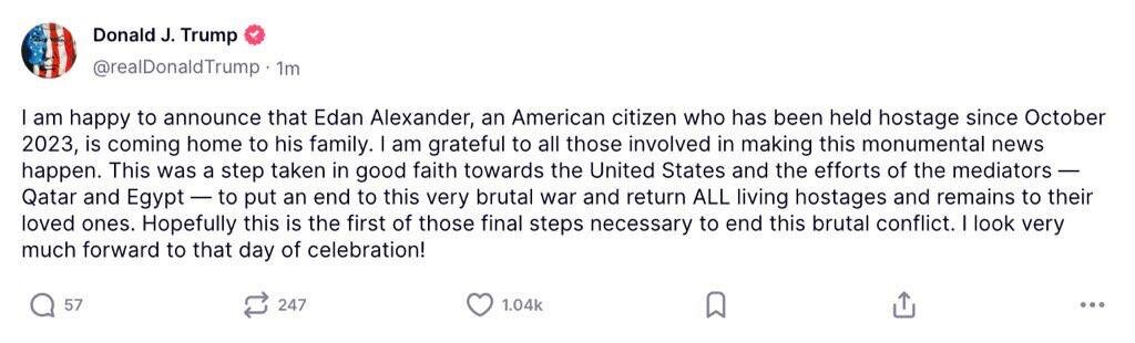 Trump CONFIRMS Edan Alexander is being released