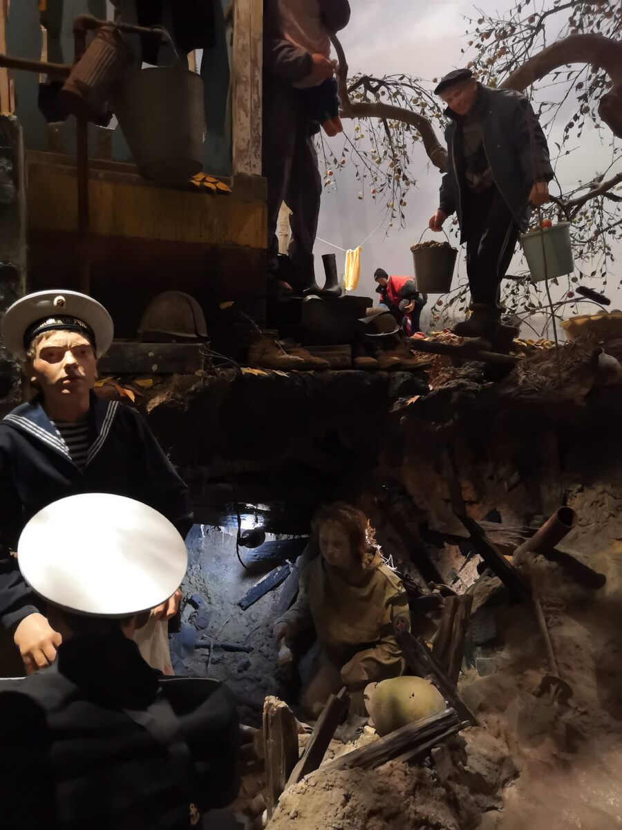 Весной 2022 в 5 павильоне Ленфильма открылась иммерсивная инсталляция "Пропавшие в кинохронике". Проект о фронтовых операторах и сотрудниках Ленфильма, снимавших историю в годы Великой Отечественной войны. Но я бы не стала ограничивать суть только этими профессионалами, это про войну, во всей ее неприглядности и во всем героизме советских людей. Все начинается с перекликающихся во времени фрагментов. Невский Пятачок, 90-е, траншеи и останки бойцов на чьем-то дачном участке, под грядками и постройками... В памяти сразу всплывает: несколько лет назад знакомая поисковиков купила дачный участок на берегу Невы и согласилась на раскопки (надо сказать, что треть пятачка застроена). Между яблонь проходила небольшая траншея, на дне которой обнаружили останки 4 солдат. По ложке удалось опознать младшего лейтенанта Гришина Кузьму Алексеевича, на момент гибели ему было 26 лет. Это совсем нечасто сейчас удается — опознать. Начинаются поиски родственников. У младшего командира были жена и сын в Мос