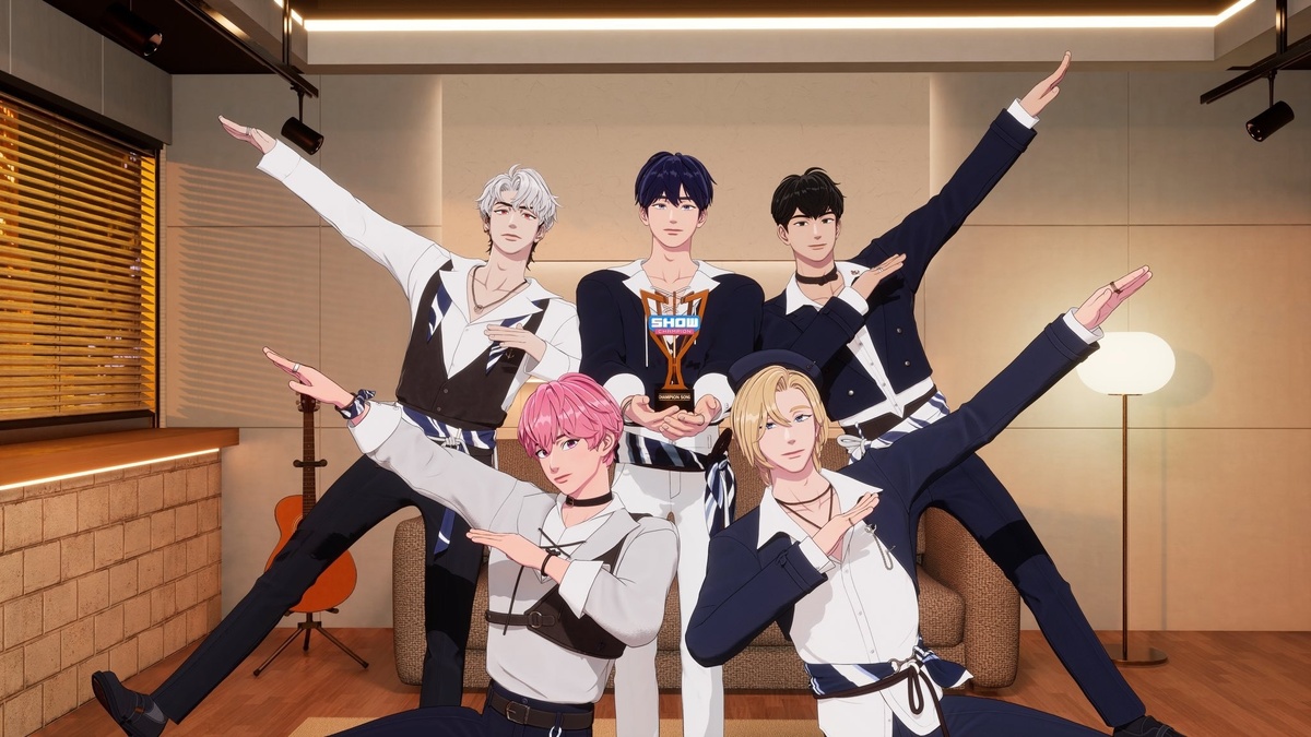 PLAVE– это не просто рисованные версии айдолов из вселенной группы, типа как у aespa или Enhypen. Это прям виртуальная группа, которая живет полной айдолской жизнью: камбэкается, выпускает альбомы (миллион копий продали, между прочим), продает мерч, ведет соцсети, записывает всякие шоу (на «Killing Voice» вот недавно были), проводит лайвы, участвует в челленджах с настоящими айдолами, выступает на музыкальных шоу и даже получает награды. Например, в прошлом году парни взяли бонсан «Артист года».
