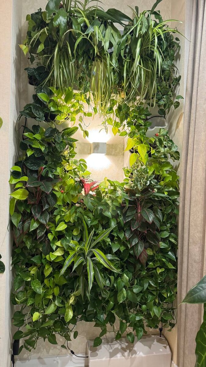 ✔️в левом нижнем углу прячется выключатель света на балконе и регулятор теплого пола. Изначально фитостена там не планировалась, поэтому теперь вот такие неудобства. Приходится лазить наощупь) Хочу закрепить там кусочек оргстекла, чтоб листья немного отодвинуть
