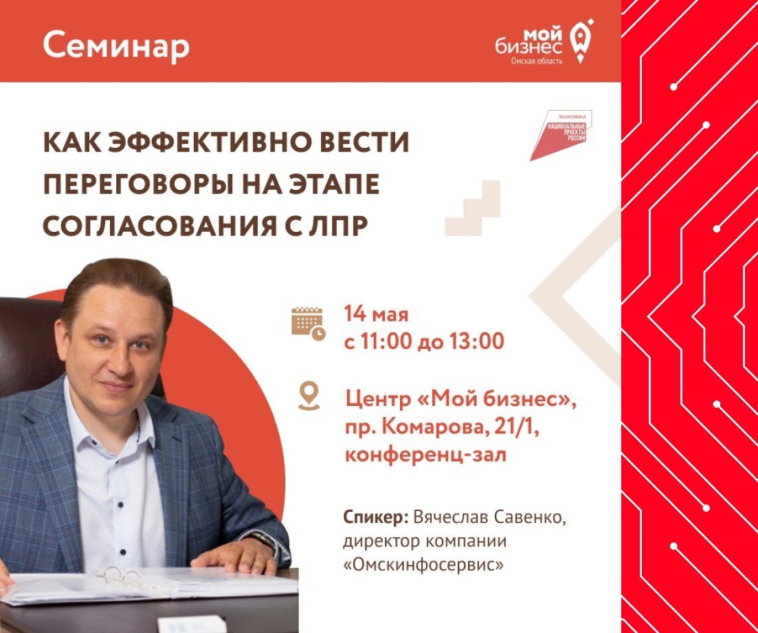 ⚡️Вячеслав Савенко, директор компании «Омскинфосервис», участницы Омской Цифры, проведет открытый семинар. 📲Тема мероприятия — «Как эффективно вести переговоры на этапе согласования с ЛПР». Участники семинара узнают: 🟥о проверенных технологиях, эффективность которых доказана личным опытом; 🟥как думает и что хочет услышать ЛПР от менеджера по продажам. Вячеслав Савенко, директор компании «Омскинфосервис»: ✅25 лет в продажах справочных правовых систем — одном из самых высококонкурентном рынке в сфере B2B; ✅20 лет управленческого опыта; ✅13 лет предпринимательского опыта. ▶️Участие в семинаре — это возможность повысить количество продаж и улучшить качество переговоров на этапе согласования с ЛПР. Мероприятие пройдет: 🔔14 мая ⏰с 11:00 до 13:00 📍в центре «Мой бизнес», пр. Комарова, 21/1, конференц-зал на 2 этаже ➡️На семинар необходима регистрация. #ОмскаяЦифра #ИТОмск