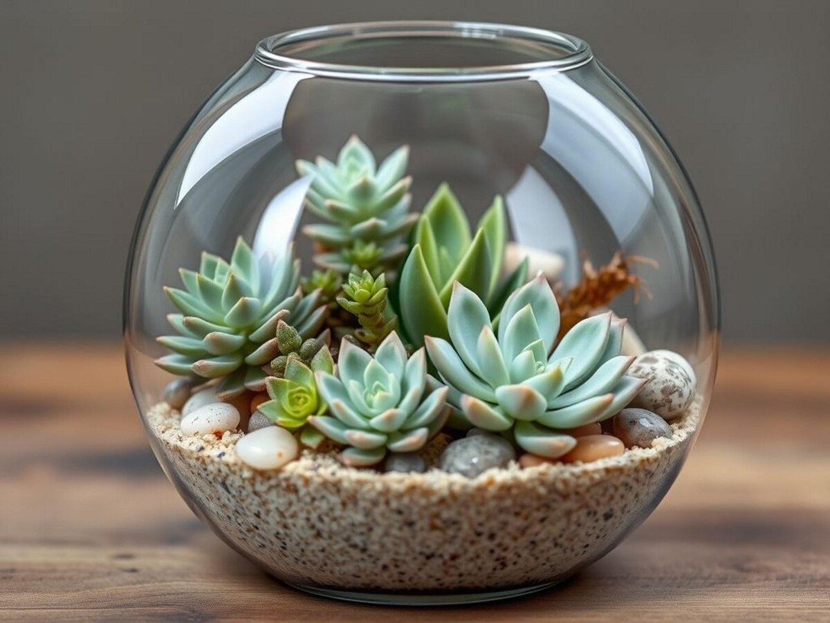 Флорариум — это не просто модный тренд, а возможность создать кусочек живой природы у себя дома. Суккуленты идеально подходят для таких мини-садов: они неприхотливы, выглядят эффектно и долго сохраняют декоративность. Даже если у вас нет опыта в растениеводстве, этот гид поможет сделать первый флорариум без лишнего стресса. Суккуленты — чемпионы по выживанию. Они накапливают влагу в листьях и стеблях, поэтому легко переносят засуху и не требуют частого полива. Это делает их идеальными кандидатами для флорариумов, особенно для тех, кто только пробует себя в этом деле. Стеклянный сосуд — основа флорариума. Но не всякая банка подойдёт. Важно учитывать размер, форму и наличие доступа для ухода. Избегайте полностью закрытых ёмкостей — суккулентам нужна циркуляция воздуха. Исключение — кратковременные декоративные колбы, но в них растения живут недолго. Помимо растений и стеклянного дома, понадобятся несколько обязательных компонентов. Без них флорариум быстро превратится в болото или пустын