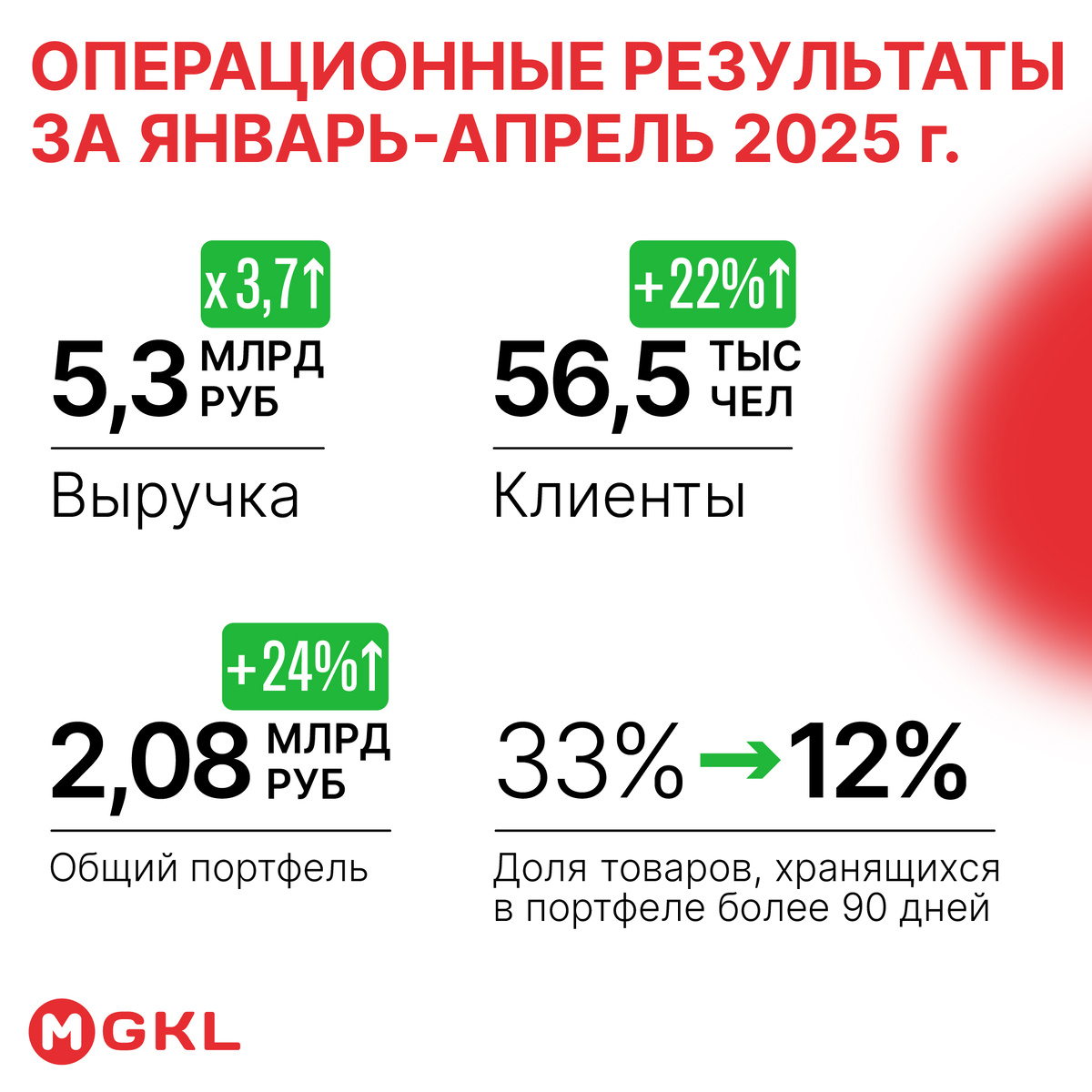 Группа «МГКЛ» опубликовала предварительные операционные результаты за первые четыре месяца 2025 года. Прогнозная выручка составила 5,3 млрд рублей, что в 3,7 раза выше, чем за аналогичный период прошлого года. ▶️ Нарастили аудиторию — благодаря развитию ресейл-платформы и запуску новых сервисов количество розничных клиентов выросло на 22%, до 56,5 тысяч ▶️ Увеличили оборот — за счёт эффективного управления товарным портфелем, общий объём залогов и товаров в ресейле вырос на 24%, до 2,08 млрд рублей ▶️ Улучшили оборачиваемость — доля товаров, хранящихся более 90 дней, сократилась с 33% до 12%, в первую очередь за счет развития ресейл направления 💬 Алексей Лазутин, генеральный директор ПАО «МГКЛ»: