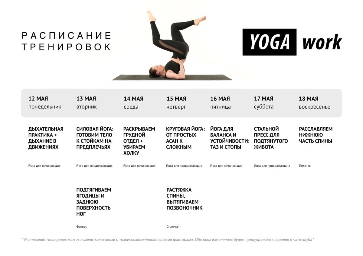 π ΠΠΎΠ²ΠΎΠ΅ ΡΠ°ΡΠΏΠΈΡΠ°Π½ΠΈΠ΅ ΠΊΠ»ΡΠ±Π° Π½Π° Π½Π΅Π΄Π΅Π»Ρ ΡΠΎ ΡΠ²Π΅ΠΆΠΈΠΌΠΈ Π½Π°ΠΏΡΠ°Π²Π»Π΅Π½ΠΈΡΠΌΠΈ ΠΠ° ΡΡΠΎΠΉ Π½Π΅Π΄Π΅Π»Π΅ Π±ΡΠ΄Π΅Ρ ΠΆΠ°ΡΠΊΠΎ. ΠΠΎΡΠΎΠΌΡ ΡΡΠΎ ΡΠ΅ΠΏΠ΅ΡΡ Ρ Π½Π°Ρ Π½Π΅ ΡΠΎΠ»ΡΠΊΠΎ ΠΉΠΎΠ³Π°, Π½ΠΎ ΠΈβ¦ ΡΠΈΡΠ½Π΅Ρ, ΡΡΡΠ΅ΡΡΠΈΠ½Π³ ΠΈ ΠΏΠΈΠ»Π°ΡΠ΅Ρ ΠΠ°, Π²Ρ Π²ΡΡ ΠΏΡΠ°Π²ΠΈΠ»ΡΠ½ΠΎ ΠΏΠΎΠ½ΡΠ»ΠΈ. ΠΡ Π΄ΠΎΠ±Π°Π²ΠΈΠ»ΠΈ ΡΡΠΈ Π½ΠΎΠ²ΡΡ
