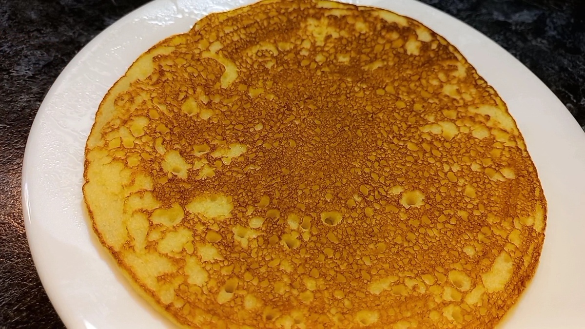 Выпекать блины на среднем огне с двух сторон до красивой румяной корочки.