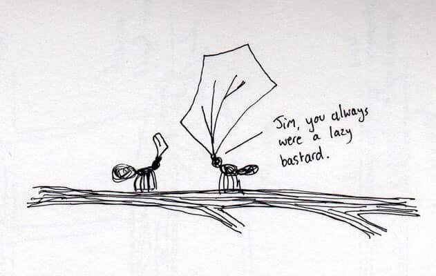 Трудолюбие муравьев отрекламировал еще баснописец Крылов, а после него — вся литература, где муравьи фигурировали хотя бы в эпизодах Но вот пришли Даниэль Шарбонно и Анна Дорнхаус из Аризонского университета — и мир больше не будет прежним Этим аризонским ученым пришла в голову мысль пометить муравьев в пяти лабораторных колониях разными красками, чтобы различать отдельные личности, а после снять всю их жизнь на микрокамеру и понять, как складываются их трудовые отношения Оказалось, что только 2.6 % муравьев постоянно работают, то есть ведут себя так, как и положено муравьям 70 % работали лишь половину времени, потом начинали имитировать активность А 25 % не делали вообще ничего, просто бесцельно слонялись по округе Сначала учёные решили, что работа у муравьев посменная или что часть муравьёв выполняют функции, скрытые от глаз Но нет, эксперименты показали, что четверть муравьёв, фигурально выражаясь, сидят на диване с пивом и щелкают пультом При этом их кормят и не прогоняют Е