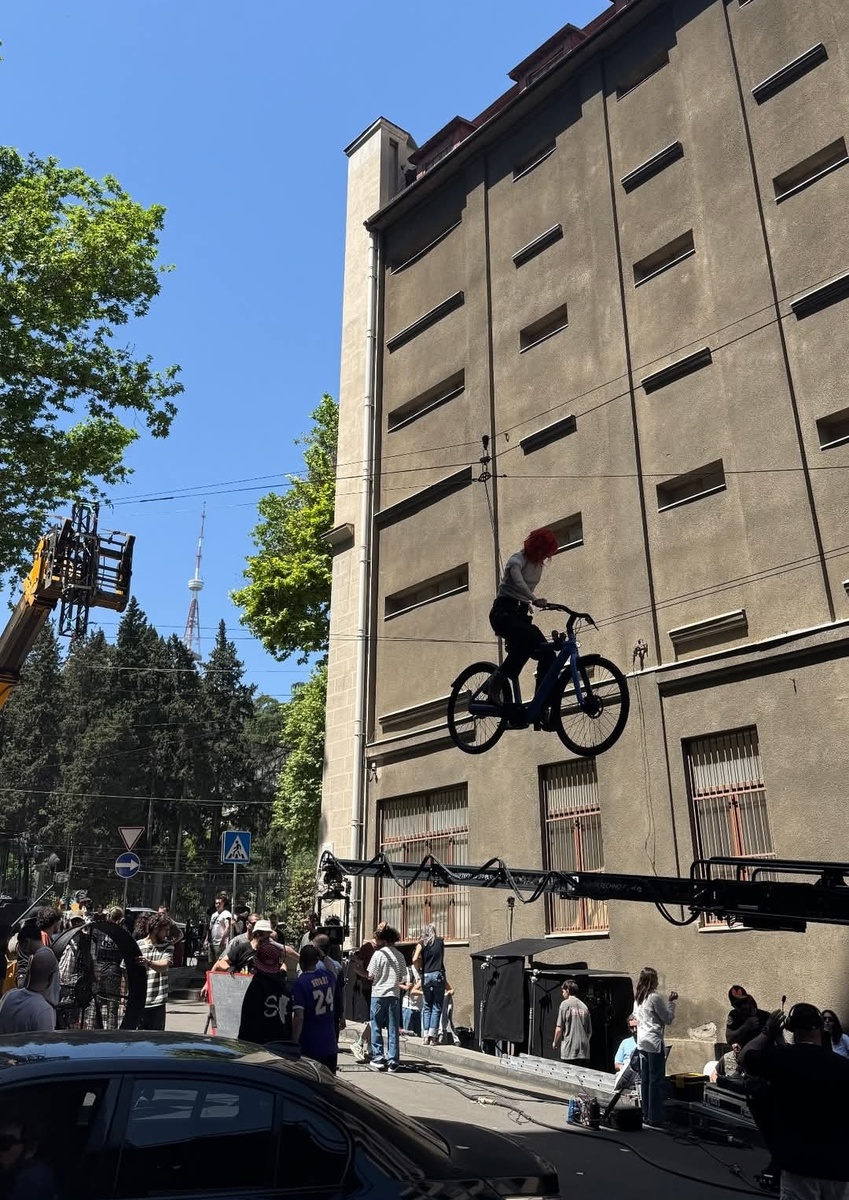 И я вот прикинула на себя роль актрисы, которая на велосипеде. Смогла бы я так, в воздухе провисеть полдня, да ещё и совершать определенные действия.