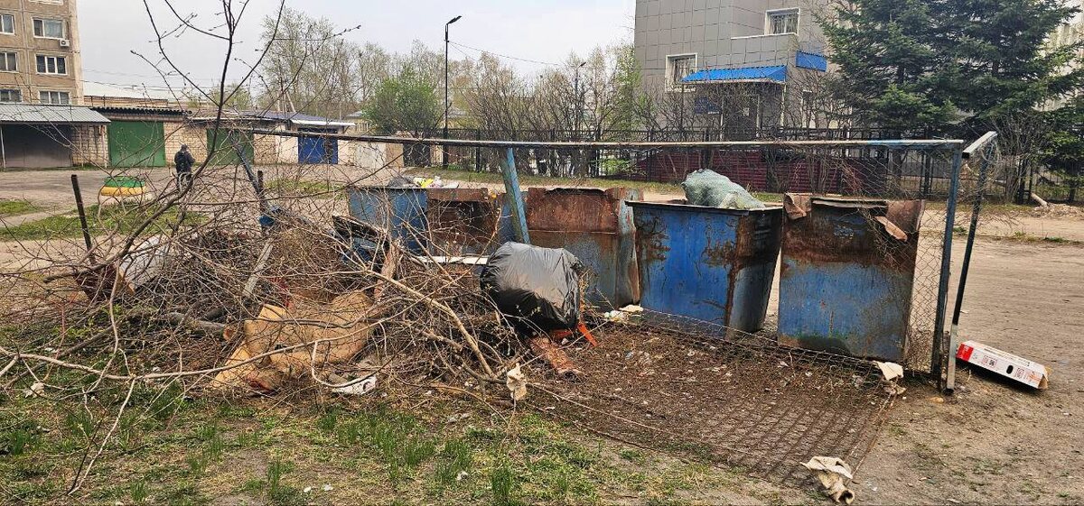 По адресу улица Чехова дом 6, во дворе идентичная ситуация. Отходы собранные после субботника и собранные возле контейнерной площадки, не вывозятся.